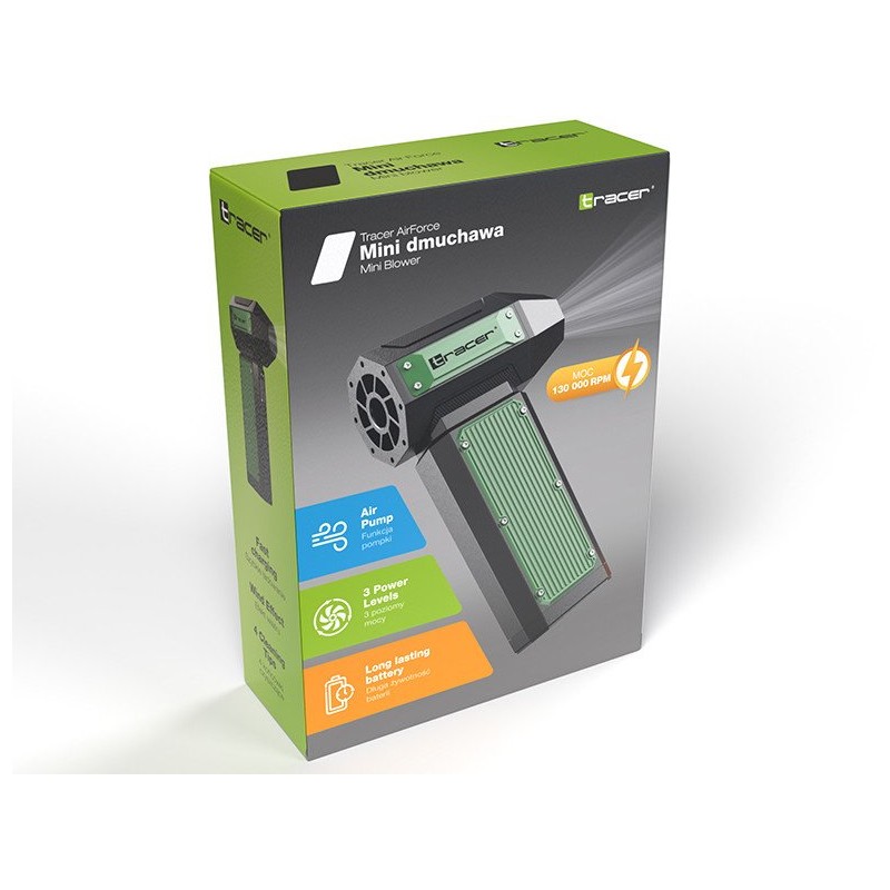 Tracer AirForce to kompaktowe, ale potężne narzędzie, które łączy w sobie wysoką wydajność, wszechstronność i mobilność. Niezależnie od tego, czy potrzebujesz go do czyszczenia sprzętu elektronicznego, prac w warsztacie czy codziennego użytku w domu, ta mini dmuchawa spełni Twoje oczekiwania.