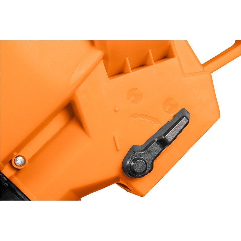Odkurzacz ogrodowy 3500W, worek na liście 45L, prędkość obrotowa 9.000-15.000/min-1, prędkość powietrza 270 km/h, wydajność 795 m/h, stopień rozdrabniania 10:1, gumowy przewód zasilający, funkcja dmuchawy, funkcja podgrabiania, pas naramienny, waga 3,3kg