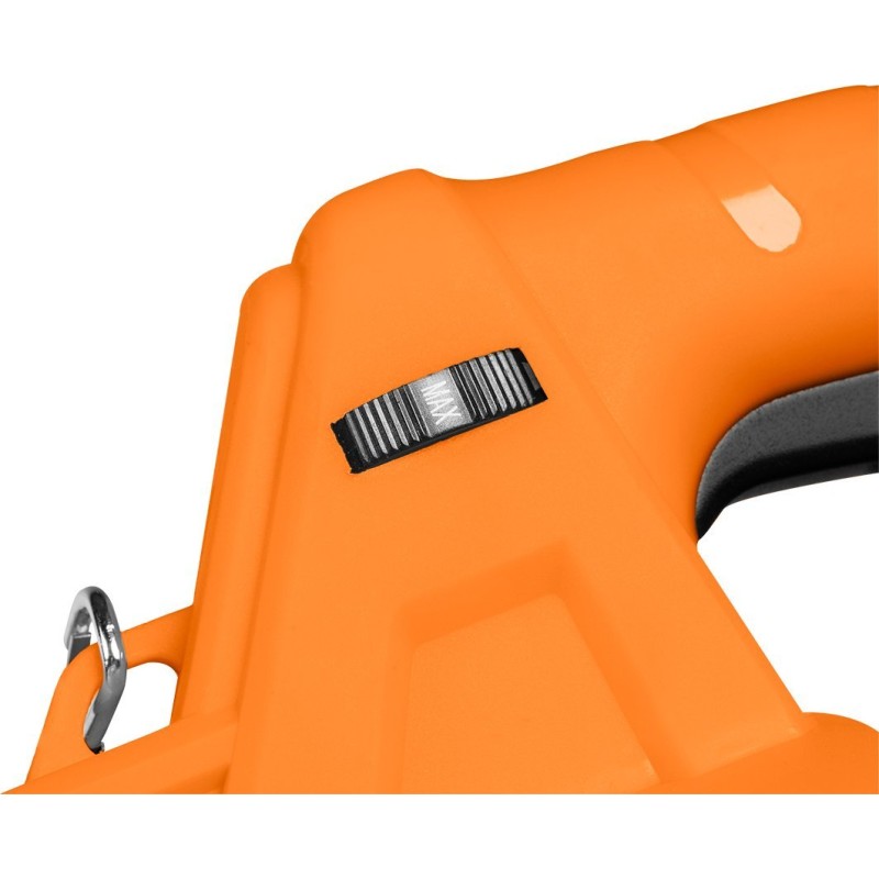 Odkurzacz ogrodowy 3500W, worek na liście 45L, prędkość obrotowa 9.000-15.000/min-1, prędkość powietrza 270 km/h, wydajność 795 m/h, stopień rozdrabniania 10:1, gumowy przewód zasilający, funkcja dmuchawy, funkcja podgrabiania, pas naramienny, waga 3,3kg