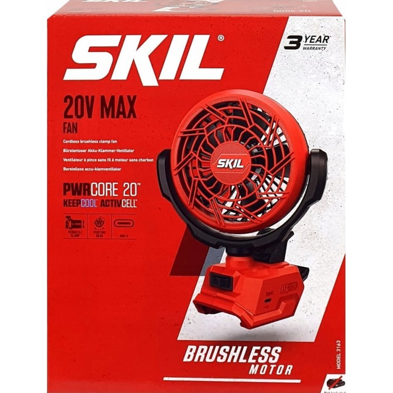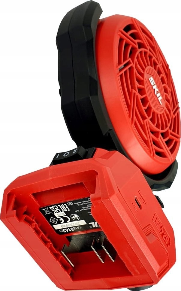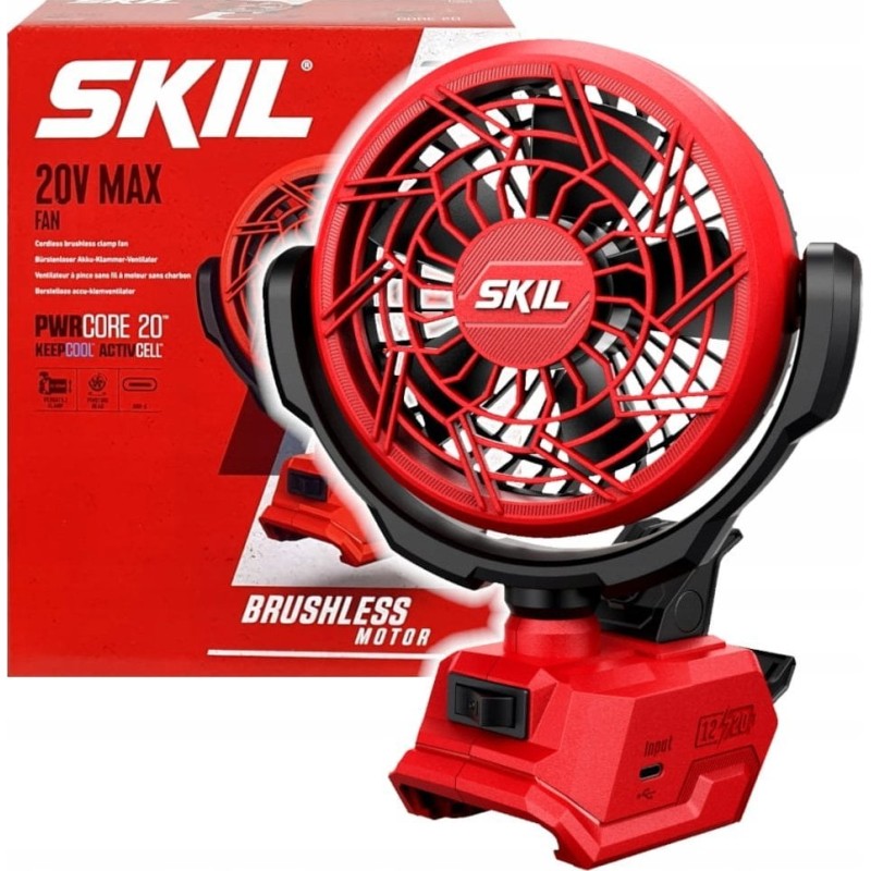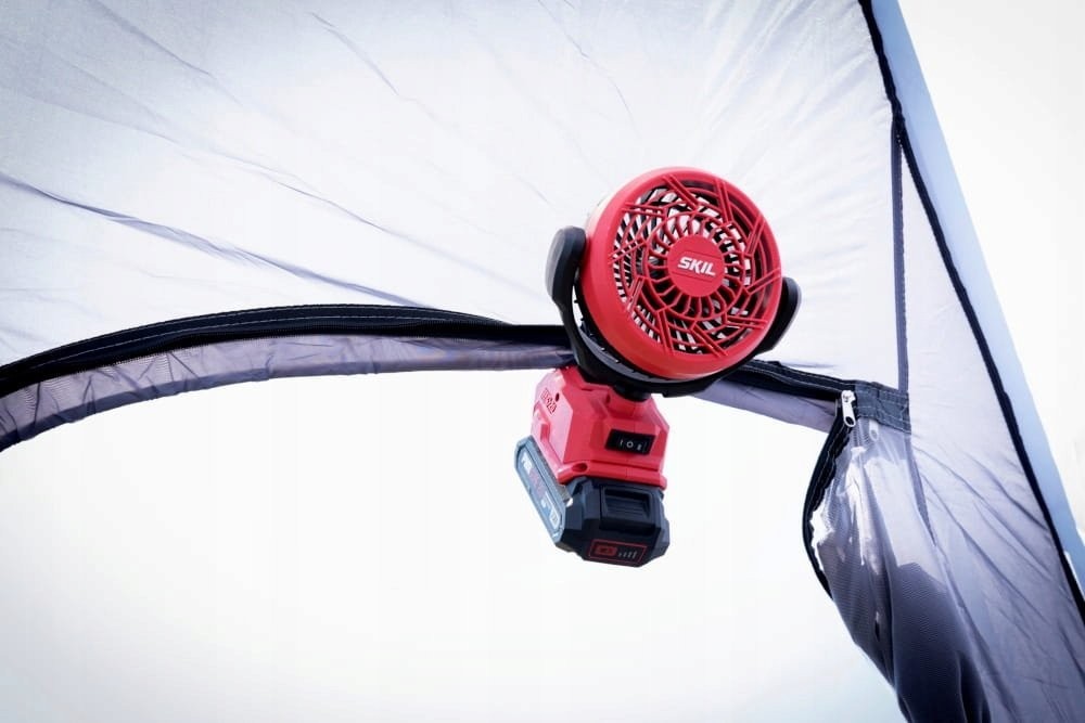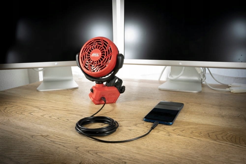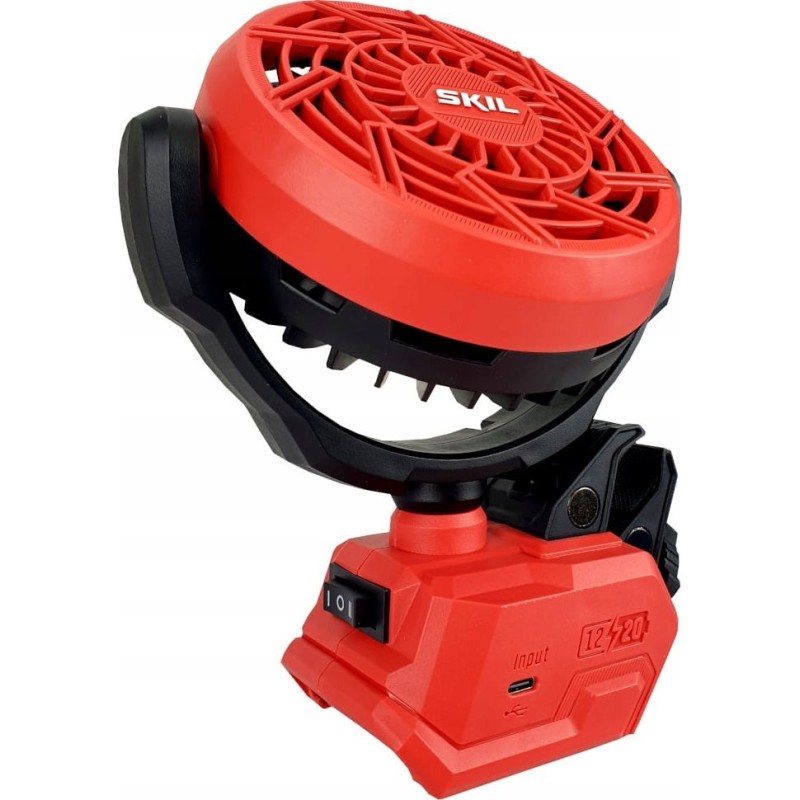 - Wentylator może być zasilany akumulatorem Skil Li-Ion 20V, 12V lub z sieci za pomocą kabla USB-C