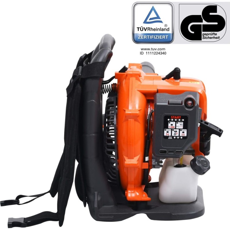Dzięki 2-suwowemu silnikowi o dużej mocy dmuchawa charakteryzuje się sporym przepływem powietrza. Po uruchomieniu wytworzy wir powietrza, który pomoże zebrać leżące liście. Obsługiwany kciukiem uchwyt sterujący oraz regulowany wylot znacznie ułatwia sprzątanie. Dzięki konstrukcji plecakowej z paskiem na ramię urządzenie to jest bardzo wygodne w użyciu, nawet przez dłuższy czas.