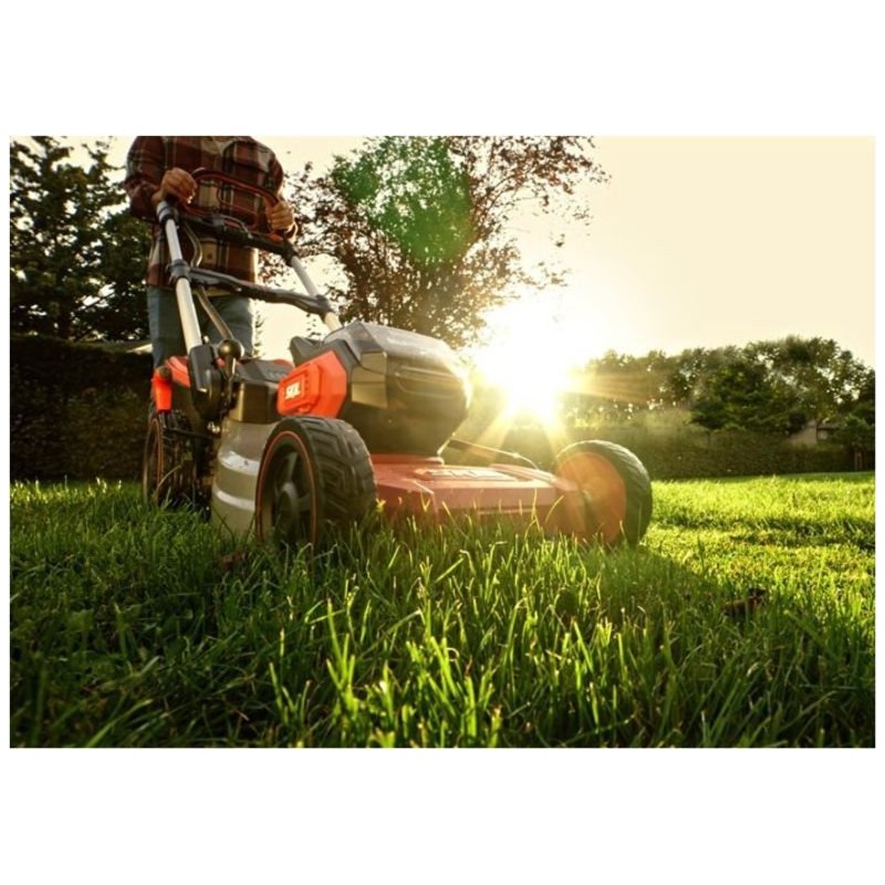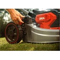 SpecyfikacjaVejapjovė jest wyposażona w dwa akumulatory Li-Ion o pojemności 4 Ah i napięciu 18 V, co zapewnia długi czas pracy. Dodatkowo, urządzenie posiada funkcję mulczowania oraz zbierania trawy, a także możliwość wyrzutu trawy z tyłu. Zbiornik na trawę ma pojemność 50 l, co pozwala na dłuższe koszenie bez konieczności opróżniania.