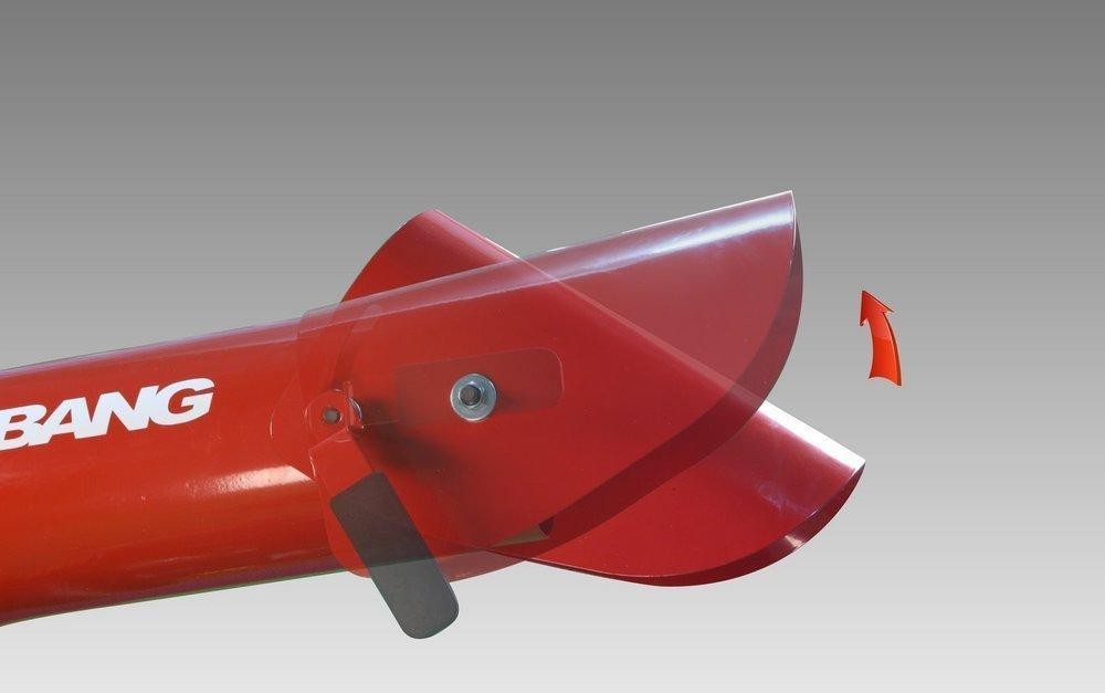 Kanał wyrzutowy przesłaniany jest osłoną deflektora, która ogranicza rozrzucanie materiału zbieranego na przyczepę.