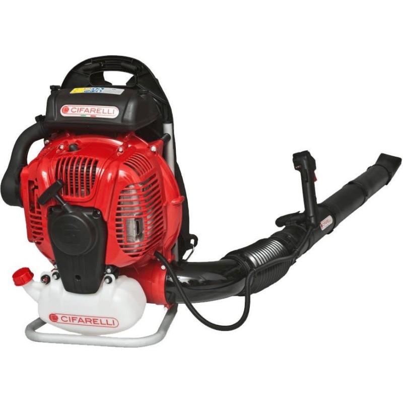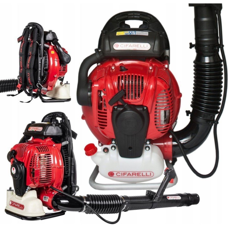 Dmuchawa do liści spalinowa firmy Cifarelli napędzana jest dwusuwowym silnikiem o pojemności 77 cm3 generującym prędkość powietrza na wylocie na poziomie 103 m/3. Silnik o mocy 5 KM zapewnia wystarczającą moc wydmuchiwania powietrza, do usuwania cięzkich zabrudzeń, zakurzeń, usuwanie nie tylko liści, ale i innych cięższych odpadków. Dmuchawa tego typu stosowana jest również amatorsko do czyszczenia maszyn, urządzeń czy innych przedmiotów.