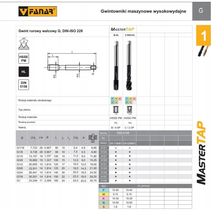 Fanar GWINTOWNIK G 1/4" DIN-5156B HSSE-PM HL MASTERTAP