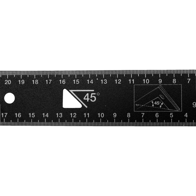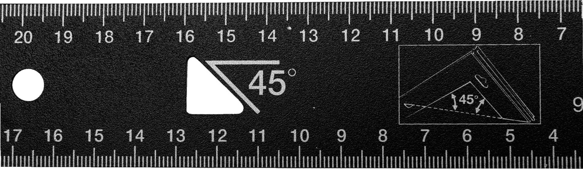 - Kątownik ze stali kutej, daje możliwość precyzyjnego mierzenia i odmierzania kątów 90° i 45°.