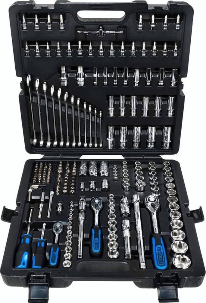 Ten 216-częściowy zestaw kluczy grzechotkowych, nasadek i bitów CHROMEplus firmy KS Tools zawiera wykonane z najlepszej stali chromowo-wanadowej nasadki 1/4", 3/8" i 1/2''. 6-punktowy (sześciokątny) profil nasadek FlankTraction sprawia, że są doskonałe do odkręcania i dokręcania wyjątkowo opornych wkrętów.