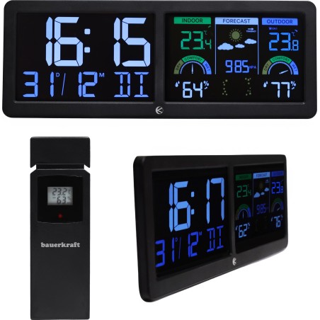 Duża podświetlana bezprzewodowa stacja pogodowa termometr barometr zegar budzik fazy księżyca kalendarz 108,21 zł Dodaj do koszyka