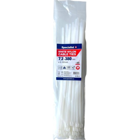 Specialist+ SPECIALIST+ nylon. strap, white, 7.2x380 mm, 50 pcs.