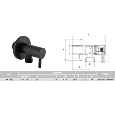 Valvex 1482350 VEGA BLACK ZAWÓR KĄTOWY 1/2X3/8 Z GŁOWICĄ CERAMICZNĄ VALVEX // Ź.VALVEX.1482350 75,84 zł Dodaj do koszyka