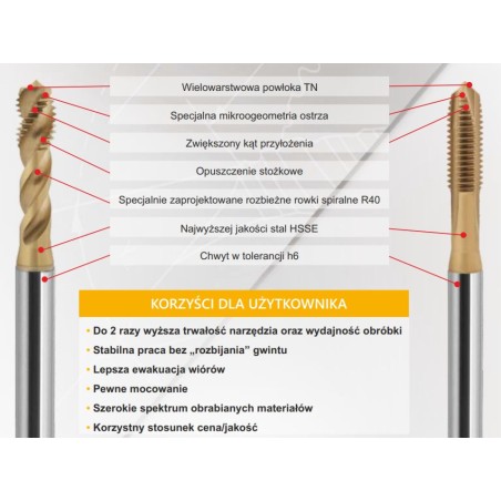 Fanar Gwintownik ręczny DIN-376C R40 HSSE TIN 800X M14 (D2-513X01-0140)