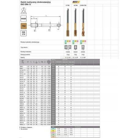 Fanar GWINTOWNIK M12x1,5 DIN-374C R40 (6H) HSSE TIN 800X