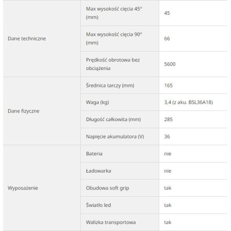 Pilarka tarczowa NAC Pilarka tarczowa CS-165-LI-ST2-20V Akumulatorowa + Akumulator 4,0 Ah + Ładowarka 356,38 zł Dodaj do koszyka