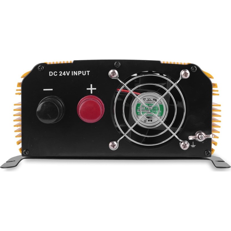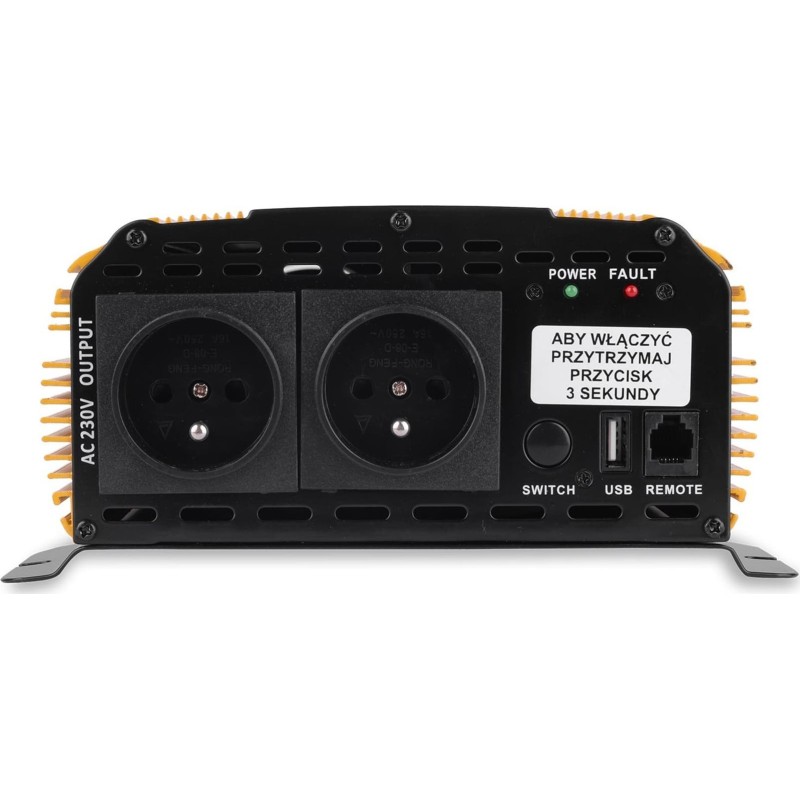Elektroniczna przetwornica SINUS PLUS 3000 24V służy do zasilania urządzeń elektrycznych wymagających napięcia przemiennego 230V z akumulatorów i instalacji samochodowych o napięciu stałym 24V. Doskonale sprawdza się w pojazdach (np. kampery) i w miejscach gdzie nie ma możliwości bezpośredniego podłączenia do sieci energetycznej. Najważniejsze cechy: 1.Przetwornica typu czysty SINUS wytwarza na wyjściu napięcie o „przebiegu sinusoidalnym”, takie samo jak w sieci energetycznej. Dzięki temu, może zasilać urządzenia o charakterze indukcyjnym m.in. elektronarzędzia siłowe, sprężarki powietrza, klimatyzatory, lodówki, zamrażarki etc.2.Wersja PLUS oferuje dodatkowo panel sterowania wraz z przewodem, który można podłączyć do przetwornicy i uruchamiać ją zdalnie za pomocą przycisku znajdującego się na panelu3.Możliwość podłączenia paneli fotowoltaicznych poprzez regulator napięcia MPPT lub PWM Jakie urządzenia zasila SINUS PLUS 3000 24V?1.Kampery2.Lodówki, zamrażarki3.Klimatyzatory4.Urządzenia RTV np. telewizory, konsole, głośniki etc.5.Oświetlenie LED6.Automatyka domowa i urządzenia typu smart home7.Elektronarzędzia np. wiertarki, szlifierki, kątówki etc.8.Urządzenia AGD np. pralki, mikrofalówki etc.9.Pompy CO