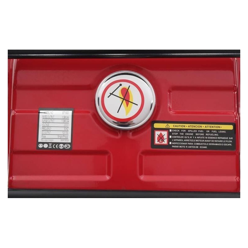 Typ silnika: spalinowy, czterosuwowy. Maksymalna moc silnika: 3,0 KM. Ilość cylindrów: 1. Rozrusznik: ręczny. Pojemność zbiornika paliwa: 5,5 l. Moc maksymalna prądnicy: 1500 W. Moc ciągła prądnicy: 1300 W. Napięcie: 230V / 50Hz - jednofazowy. Ilość gniazd: 1 x 12V, 2 x 230V. Regulator napięcia: nie. Stabilizator napięcia (AVR): nie. Woltomierz: tak. Koła transportowe: nie.