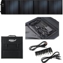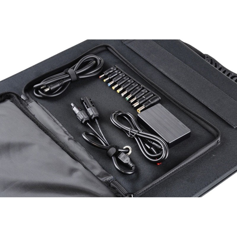 Jest to doskonałe rozwiązanie w sytuacjach, gdy nie mamy dostępu do energii elektrycznej, na przykład podczas wycieczek na świeżym powietrzu czy w czasie kempingu, a potrzebujemy doładować naszą stację zasilania lub inne urządzenie elektryczne. Składa się z czterech paneli monokrystalicznych, które po złożeniu tworzą formę walizki, ułatwiającą transport i przechowywanie.