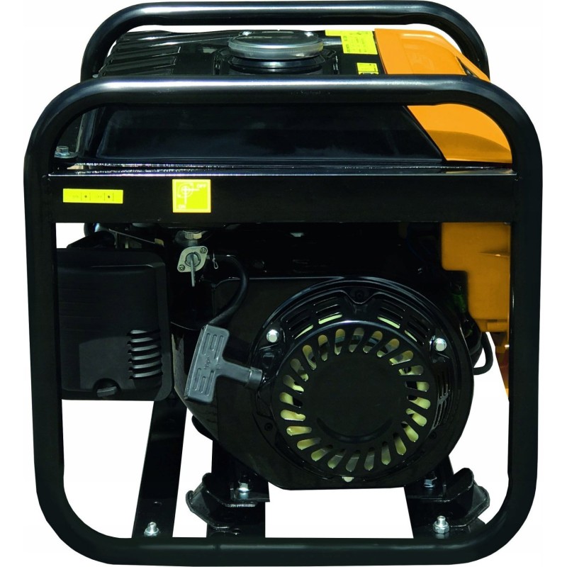 • Wyposażony jest w dwa gniazda 230 V, zabezpieczenie termiczne oraz czujnik oleju, który wyłącza silnik w przypadku niedoboru oleju.
