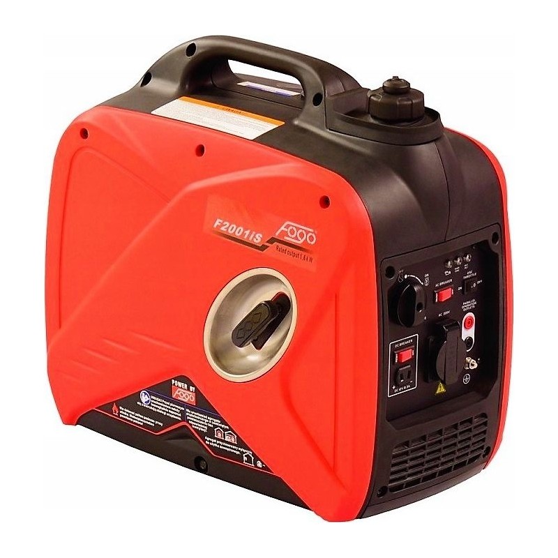 Nowość w ofercie FOGO!! FOGO F2001 iS jest inwerterowym agregatem prądotwórczym o mocy znamionowej 1600W – 1,6kW (moc chwilowa 1800W – 1,8kW). Jest to bardzo uniwersalny agregat prądotwórczy posiadający pełną sinusoidę i bardzo stabilne parametry napięć i częstotliwości Hz. Agregat zbudowany w cichej kompaktowej obudowie, idealnie nadaje się do zasilania elektroniki, pieców CO, UPS. Nie zastąpiony na biwaku, w Camperze, domku letniskowym. Ciekawą funkcją tego agregatu jest system automatycznej redukcji prędkości obrotowej silnika, który jest zależny od mocy, jaką musi wyprodukować agregat. Tak zwany ECO Mode to bardzo przydatna funkcja, dzięki której zwiększa się oszczędność paliwa i zmniejsza nam się głośność agregatu.