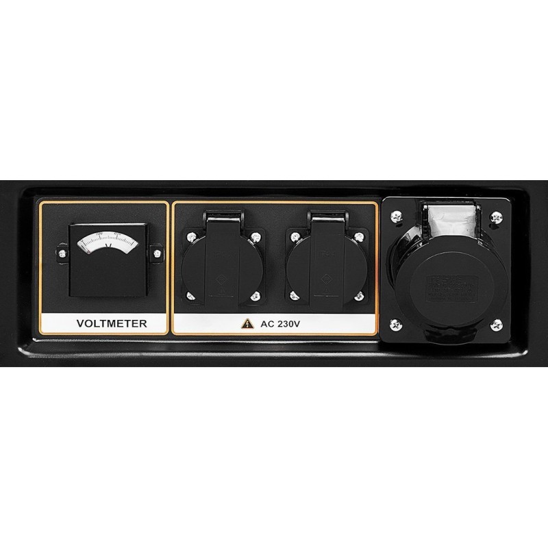 Wysokiej klasy generator prądotwórczy przeznaczone do zasilania różnego typu urządzeń elektrycznych w miejscach bez dostępu do sieci. Moc: 6000W/6500W, gniazdo 1x12V + 2x230V(16A) + 1x230V(32A), silnik benzynowy 11 kW/17,6 kM, zbiornik 25 l, min zużycie paliwa 0,313 g/kW.h średnie zużycie paliwa 2,63 l/h, wymiary (LxWxH) 815x530x 560, olej SAE15W-30, pojemnik oleju1,1l, paliwo 92,95,98, LwA = 97dB, waga 85 kg, 15HP, EURO V, AVR, IP 23M, 25A, typ świecy zapłonowej F6RTC, obroty 3000 min, pojemność skokowa 420 CC