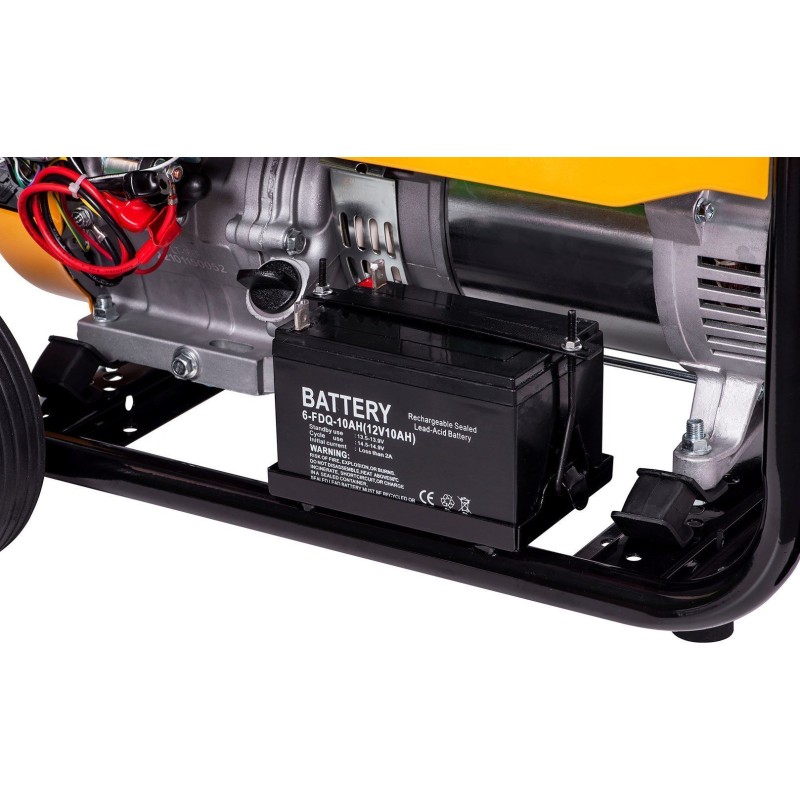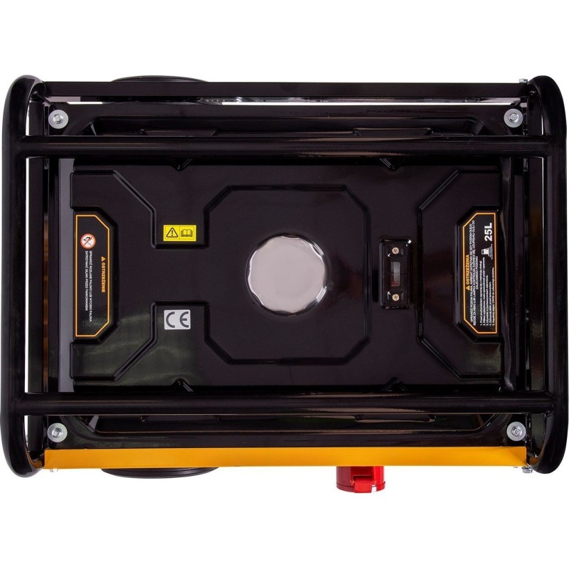 • Wyposażony jest w dwa gniazda 230 V, zabezpieczenie termiczne, oraz czujnik oleju, który przy niedoborze oleju wyłącza silnik