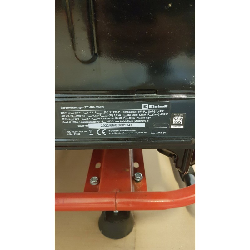 Einhell TC-PG 65/E5. Pojemność baku na benzynę: 25 l, Rodzaj paliwa: Benzynowy, Czas działania przy 2/3 ładunku: 11,7 h. Kolor produktu: Czarny, Czerwony. Waga produktu: 79 kg