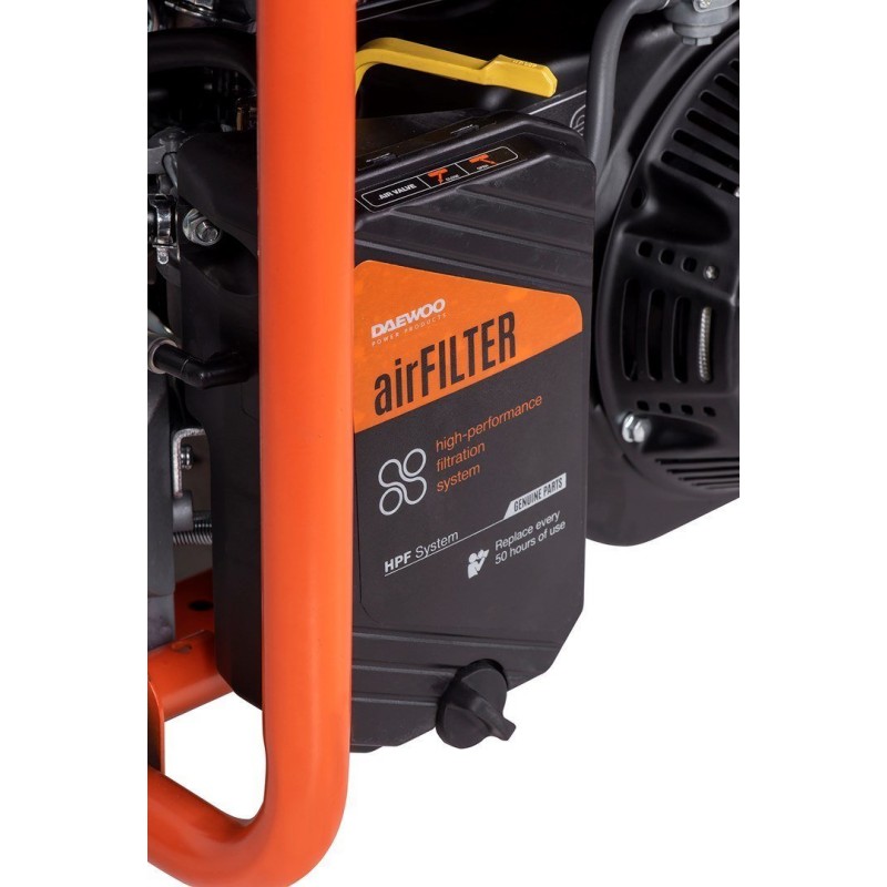 Generator ten wyposażony jest w zaawansowany system filtracji powietrza. Stanowi to dodatkową ochronę silnika wychwytując kurz i zanieczyszczenia, które mogą powodować przegrzanie silnika.