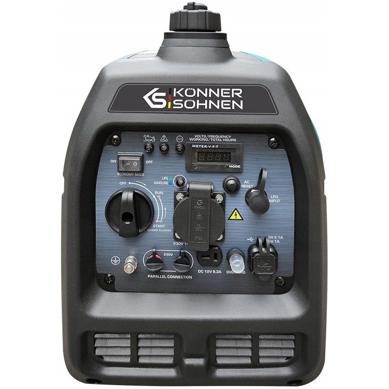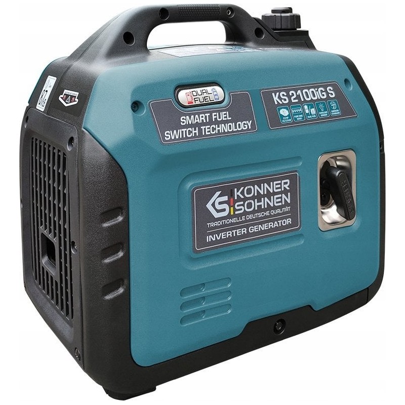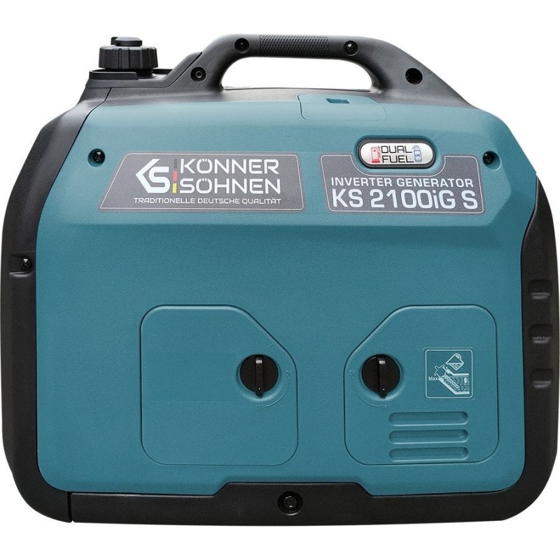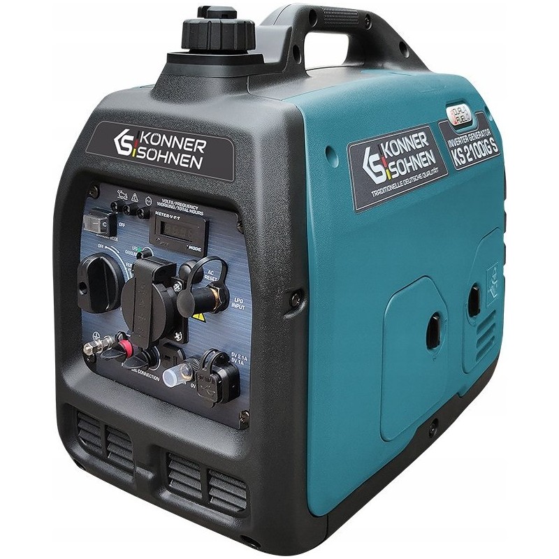 Bezszczotkowy generator inwerterowy Könner & Söhnen KS 2100iG S niemieckiej marki Könner & Söhnen to wygodne, kompaktowe, prawie bezgłośne źródło energii elektrycznej. Kluczową cechą tego modelu jest to, że wytwarza prąd elektryczny o prawidłowej fali sinusoidalnej.