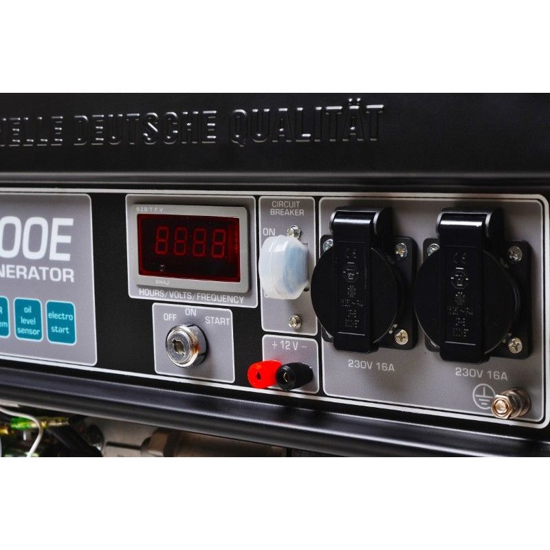 Wygodny, ergonomiczny panel sterowania z elektro starterem który łatwo uruchamia generator, pozwala z łatwością sterować całym urządzeniem i nie wymaga dodatkowych umiejętności. Nowoczesny, inteligentny LCD monitor zawsze podpowie ilość przepracowanych godzin, częstotliwość i wydawane napięcie. Informacja na wyświetlaczu pomaga prawidłowo ocenić obciążenie urządzenia i we właściwym czasie przeprowadzić konserwację generatora, tym samym przedłużając okres jego eksploatacji.