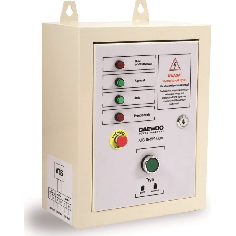 DAEWOO ATS 15-220 GDA to moduł automatycznego sterowania agregatem prądotwórczym DAEWOO ATS15-220GDA przeznaczony jest do współpracy z benzynowymi agregatami prądotwórczymi DAEWOO serii GDA: