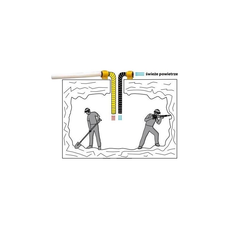 Przykład: prace podziemne - wdmuchiwane jest świeże powietrze do wewnątrz, zużyte powietrze jest wyciągane na zewnątrz i filtrowane.