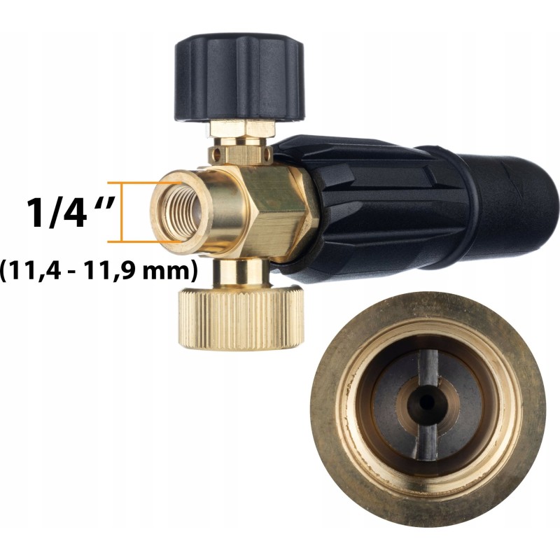 - Pianownicę Rosfix S0401 1000 ml do myjki ciśnieniowej G1/4F z dyszą 1,23 mm: Pianownica o pojemności 1000 ml jest idealna do tworzenia gęstej piany, która skutecznie usuwa brud i zanieczyszczenia z powierzchni. Wyposażona w dyszę o średnicy 1,23 mm, gwarantuje optymalny przepływ i równomierne rozprowadzanie środka czyszczącego. Pianownica jest kompatybilna z myjkami ciśnieniowymi, które posiadają złącze G1/4F, co zapewnia łatwe podłączenie i użytkowanie.