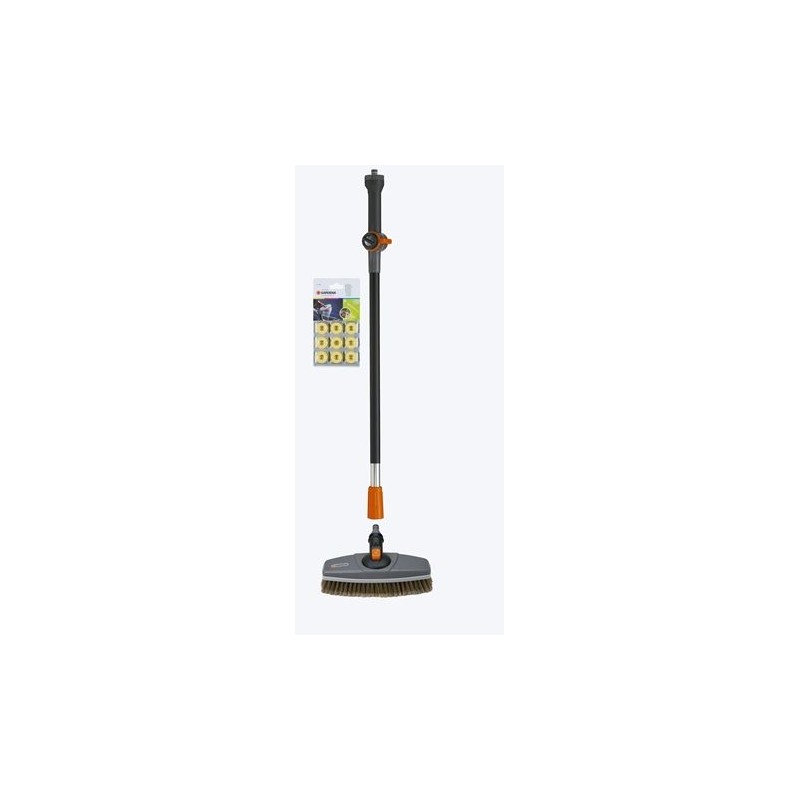 GARDENA zestaw do mycia samochodu jest gotowy do natychmiastowego użycia. Komplet zawiera: szczotka do mycia (art. nr 5570), trzonek przepływowy 90 (art. nr 5552) i szampon (art. nr 1680). GARDENA zestaw do mycia samochodu został opracowany pod kątem delikatnego, a zarazem efektywnego mycia pojazdów i delikatnych powierzchni. Praktyczne: szczotkę do mycia można stopniowo obracać co 30°. Do bezwysiłkowej pracy i doskonałego dostosowania do trudno dostępnych miejsc.