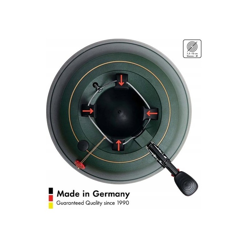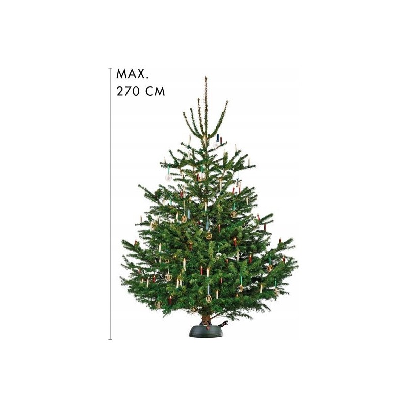 Maksymalna wysokość drzewa: 2,7 m Maksymalna średnica pnia 12cm Zbiornik wodny: 3,7 l Waga stojaka ok.: 5,2 kg Stojak Ø: 37cm ✔ NOWOŚĆ : Pedał antypoślizgowy ✔ Opatentowany pas bezpieczeństwa ✔ Opatentowany dzwonek bezpieczeństwa ✔ Wyprodukowano w Bawarii