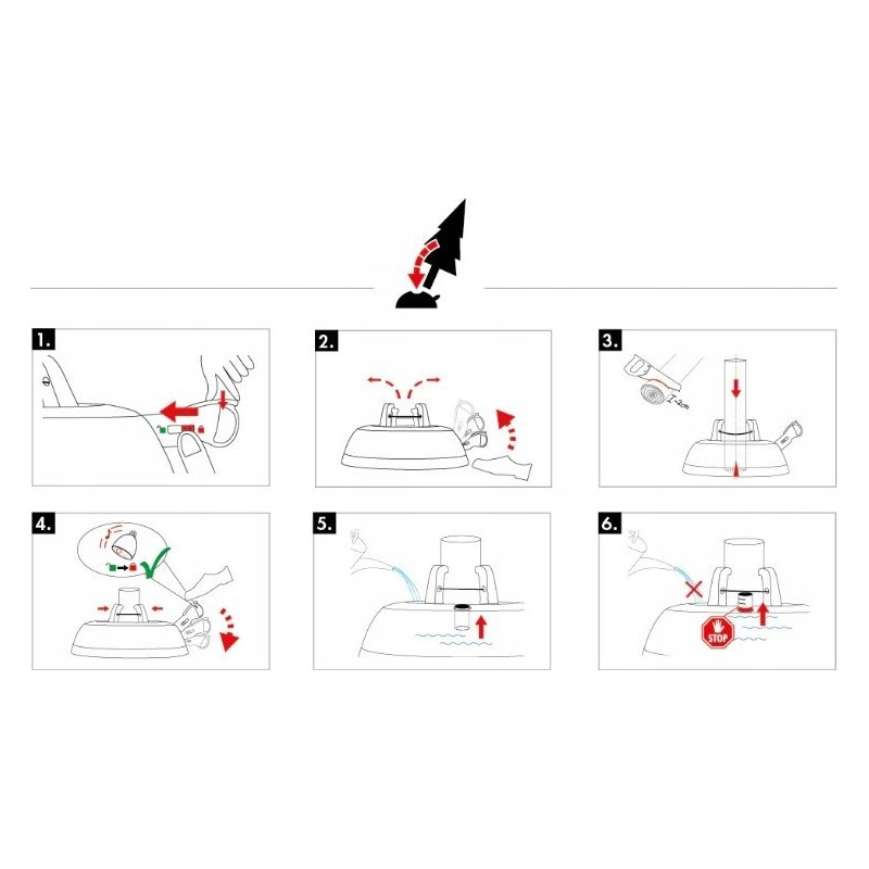 PING-automatyczny mechanizm zamykania stojaka. Odgłos dzwonka oznacza, że choinka stoi stabilnie i jest bezpieczna. Jednocześnie dźwignia stojaka jest zaryglowana i zabezpieczona. Pętla ze stalowej linki zapewnia równomierne zaciskanie się szczęk mocujących na pniu drzewka i jego bezpieczne zamocowanie Opatentowany mechanizm bezpiecznego otwierania szczęk stojaka. Otwierając się „krok po kroku” zabezpiecza przed niekontrolowanym przewróceniem się choinki Wskaźnik poziomu wody. Komfort przy ustawianiu choinki w stojaku, możliwość idealnie pionowego ustawienia tylko przez jedną osobę certyfikaty bezpieczeństwa