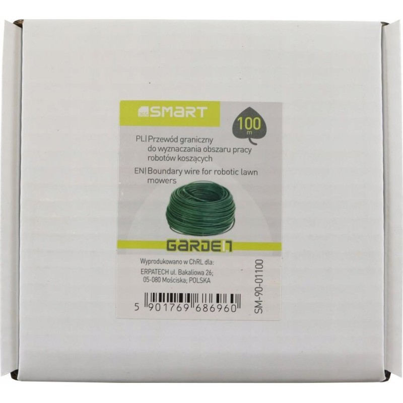 Kabel ograniczający marki SMART365. Kabel o długości 100 metrów do wyznaczania i ograniczania powierzchni trawnika przeznaczonej do koszenia przez robota koszącego. Produkt wykonany z miedzi, dodatkowo pokryty cyną.
