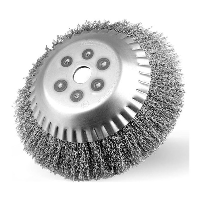 Dane techniczne:Średnica: 200mm Otwór: 25,4mm Wykonana z drutu stalowego: FI 0,30 Szczotka do kos mechanicznych Służy do czyszczenia powierzchni np z mchów, trawy**Zdjęcia pełnią funkcję poglądową....