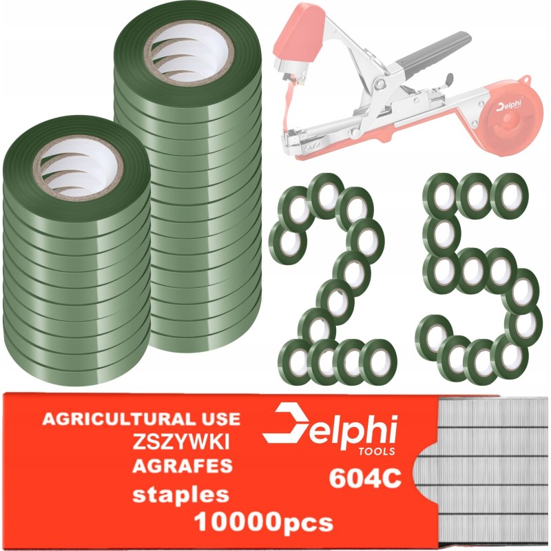 25 Rolek Taśma do Tapenera Ogrodniczego + 10000 sztuk Zszywek 604C