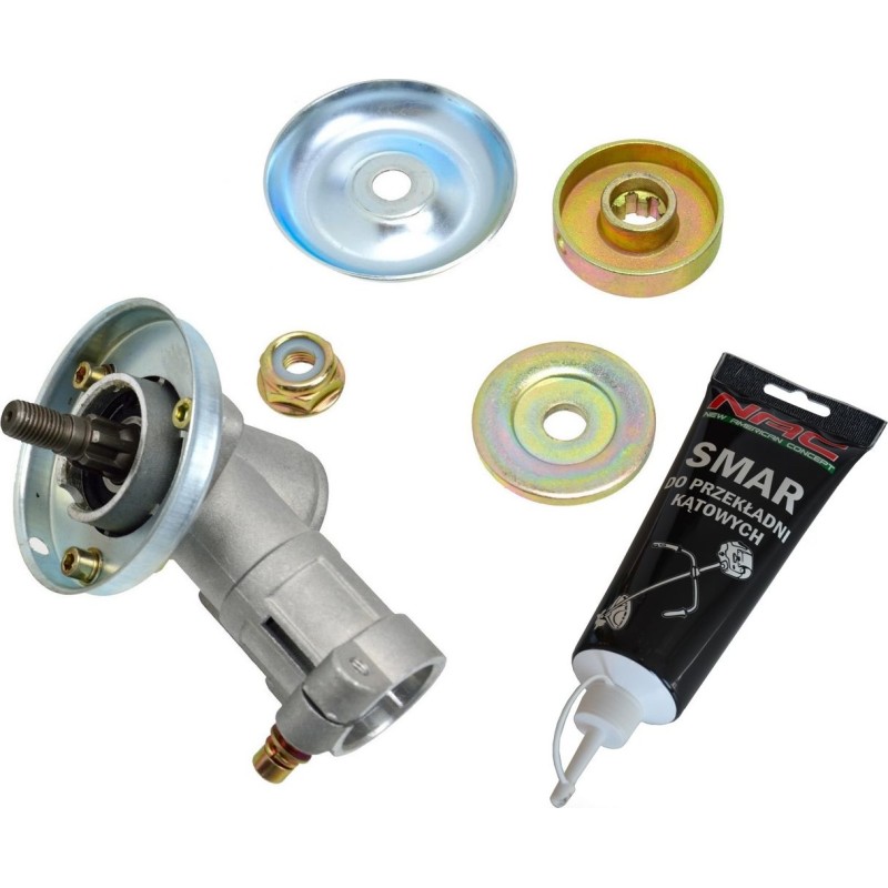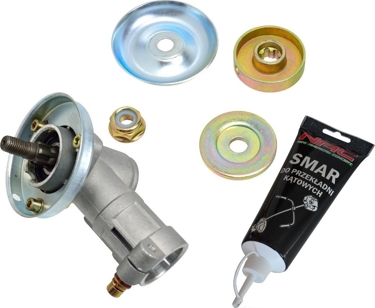 Kompatybilność: kosy NAC SPS205210BC02N, BP520-27-T, BP52PR-T, BP52CA-T oraz wszystkie z serii CG. Liczba frezów: 9. Mocowanie przekładni na rurze: 26 mm. Zestaw zawiera: smar 200 g do smarowania przekładni kątowej kos spalinowych i podkaszarek elektrycznych. Kod produktu: SPS205210*109-120 + NAC*SMAR200.