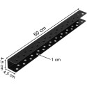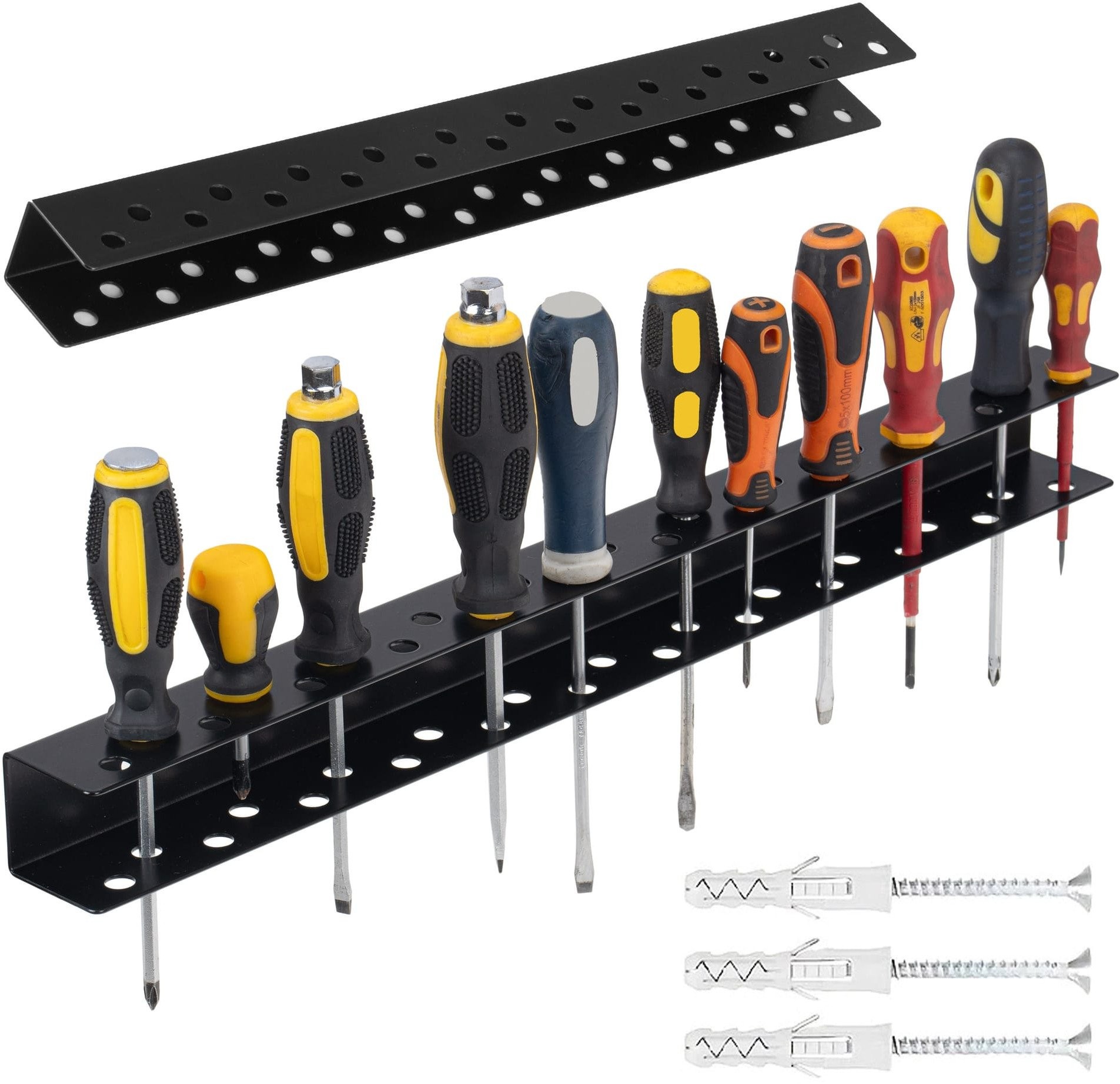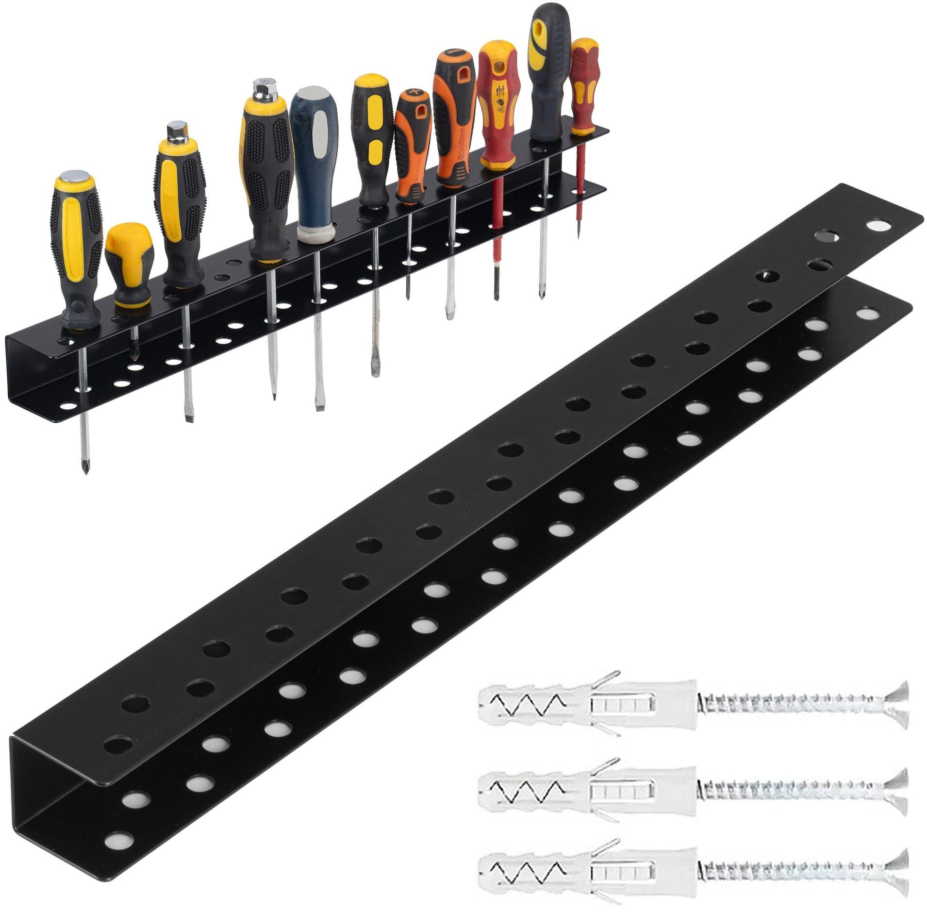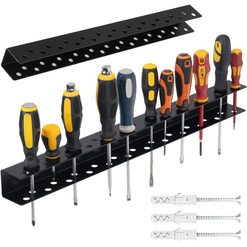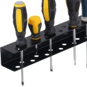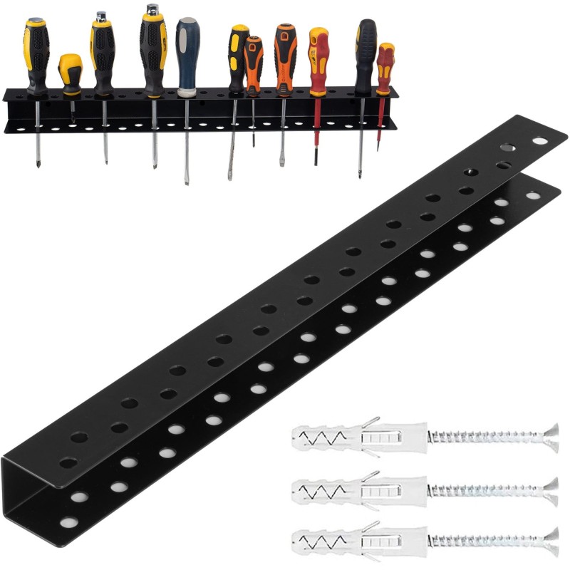 Wieszak ścienny na 23 narzędzia szyna CARMINPrzeznaczenie: warsztat, garaż, pomieszczenie gospodarcze | Kolor: czarny | Materiał: metal Wieszak na narzędzia marki Carmin to doskonałe rozwiązanie dla osób, które chcą utrzymać porządek i zoptymalizować organizację w warsztacie, garażu czy piwnicy. Dzięki wytrzymałej metalowej konstrukcji pokrytej czarną powłoką proszkową, wieszak jest nie tylko solidny, ale także stylowy, pasując do różnych przestrzeni. Pomieści aż 23 wkrętaki, zapewniając wygodny dostęp do narzędzi i lepsze zarządzanie miejscem pracy. Montaż na ścianie jest prosty, a zestaw zawiera wszystkie niezbędne elementy. Szyna ścienna Carmin zyskujesz porządek, oszczędność miejsca oraz lepszą organizację narzędzi. SpecyfikacjaMateriał: Stal malowana proszkowoWaga: 0,71 kgKolor: CzarnyMaksymalna pojemność: 23 śrubokrętyMaksymalne obciążenie: 8 kgZawartość zestawu: kołki montażowe 3 szt., zaślepki 3 szt., instrukcja montażu WymiaryWysokość: 4,5 cmSzerokość: 50 cmGłębokość: 4,5 cm23 miejsca z otworami: 1 cm Informacje dodatkowePrzedstawione kolory należy traktować poglądowo - mogą odbiegać od rzeczywistych ze względu na różne ustawienia monitorów oraz proces obróbki zdjęć. Rzeczywiste wymiary mogą się różnić od podanych wyżej. Tolerancja błędów może wynosić +/- 5%.Marka:GockowiakKod EAN:5902340331200Kolor:czarnyMateriał:Stal malowana proszkowoSzerokość:50 cmWysokość:4,5 cmGłębokość:4,5 cm