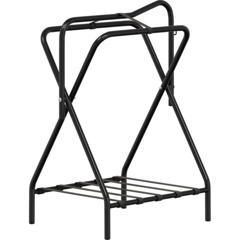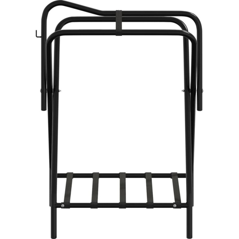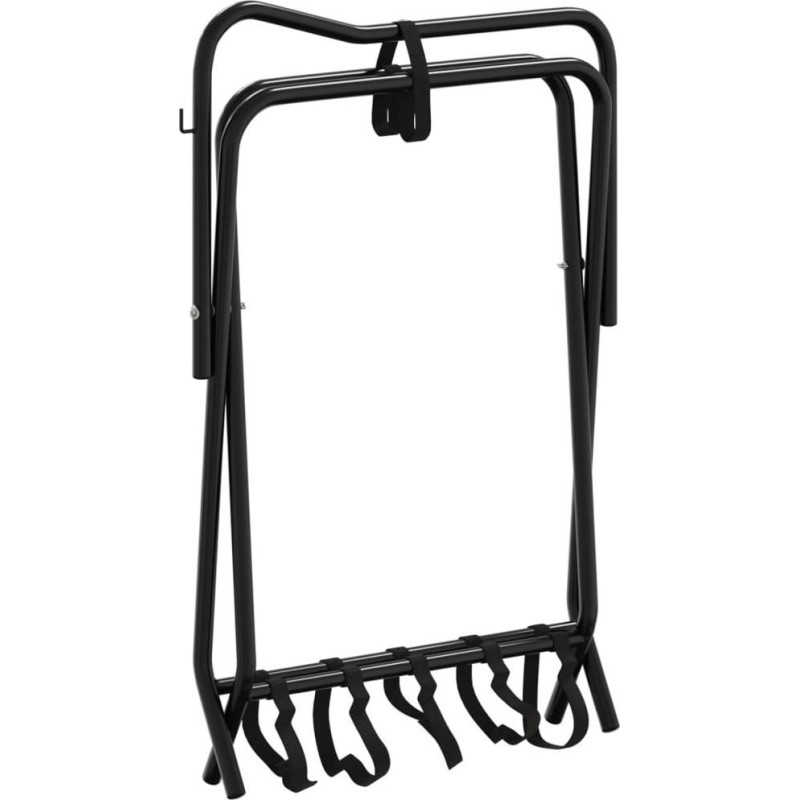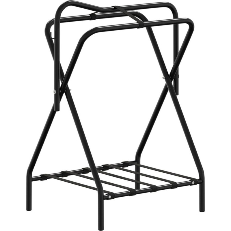 Ten składany stojak na siodło stanowi wspaniałe akcesorium, które doskonale sprawdzi się w siodlarniach lub na pokazach koni.
