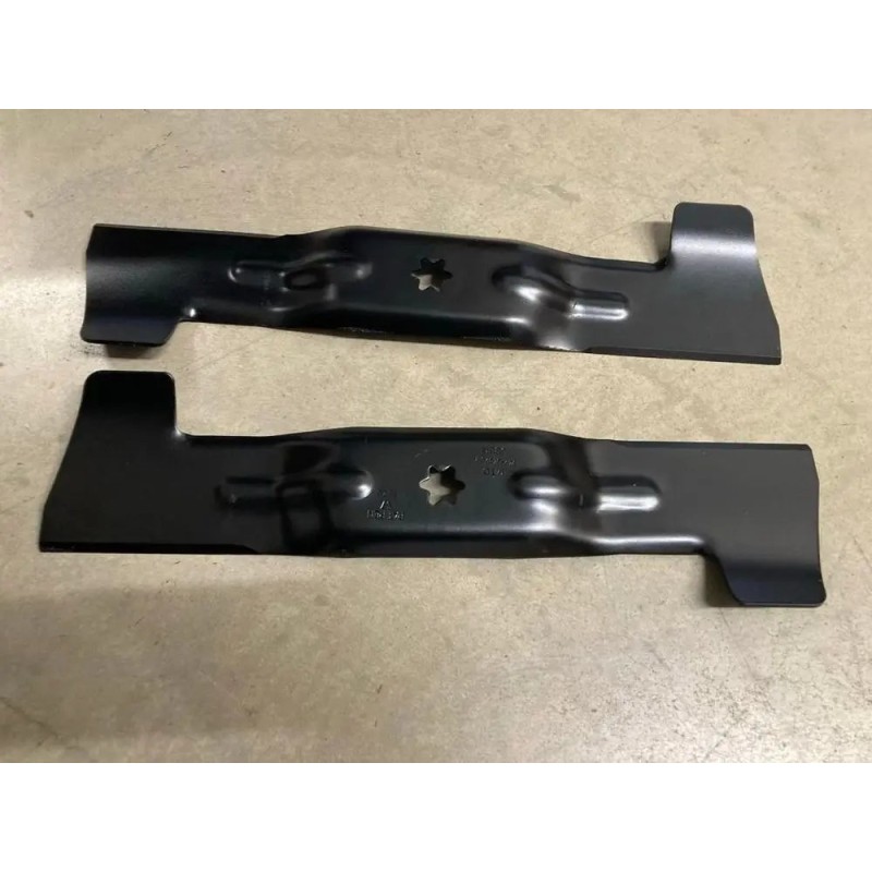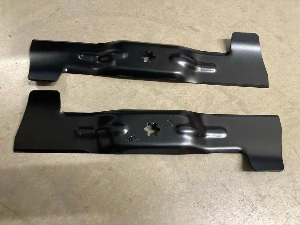 Zestaw dwóch noży tnących do traktorków ogrodowych z koszem zbierającym MTD, CUB CADET i WOLF-GARTEN o szerokości koszenia 105 cm.