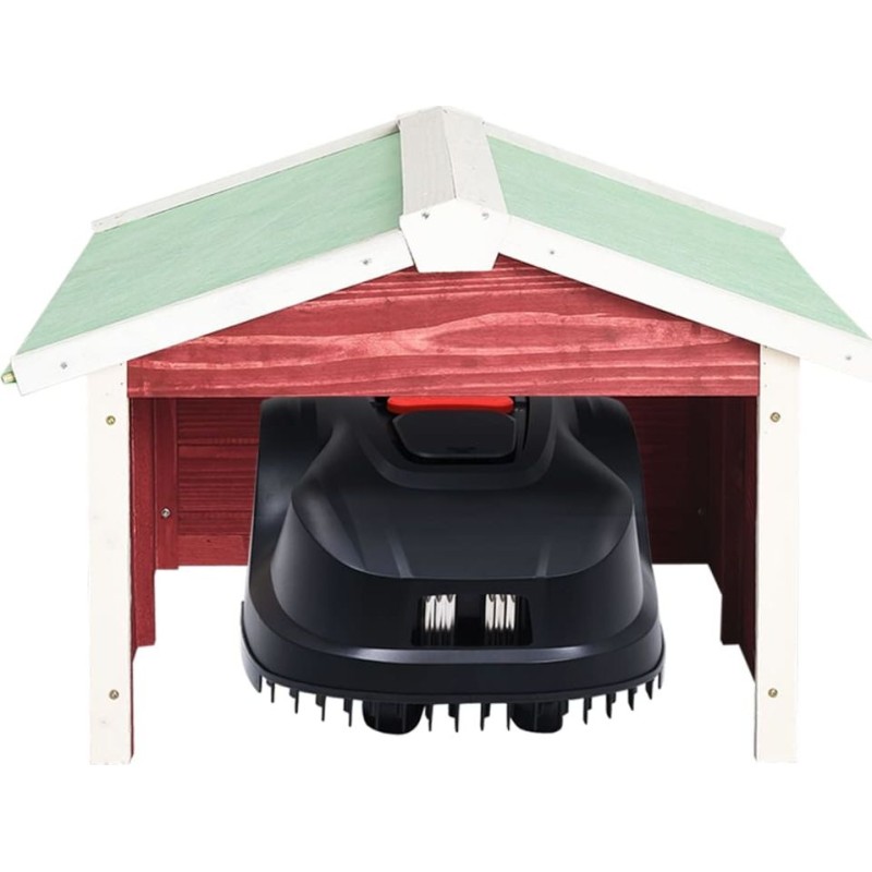 Ten garaż dla zautomatyzowanej kosiarki, wykonany z litego drewna jodłowego, jest trwały i odpowiedni do użytku na zewnątrz. Skutecznie chroni kosiarkę i jej stację ładującą przed deszczem, śniegiem i szkodliwym promieniowaniem UV. W ten sposób wydłuża on żywotność kosiarki i jej akcesoriów. Rustykalny i prosty design pasuje wizualnie do większości ogrodów. Tę osłonę można łatwo zmontować i równie łatwo przenosić, ponieważ nie są potrzebne żadne kołki ani inne elementy mocujące.