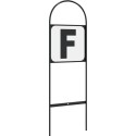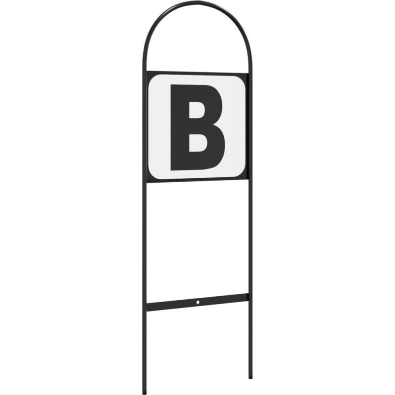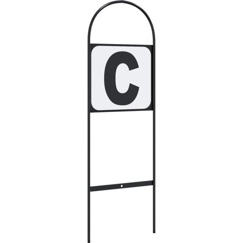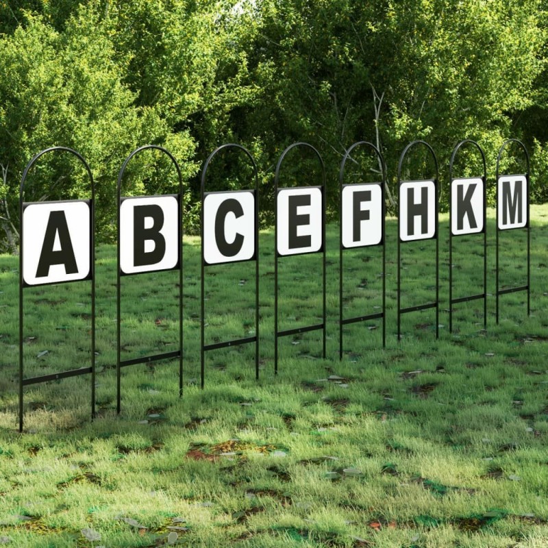 - Solidna rama: litery na czworobok są zamontowane na solidnej stalowej ramie, którą można łatwo wcisnąć w ziemię, aby oznaczyć punkty na długich ujeżdżalniach.