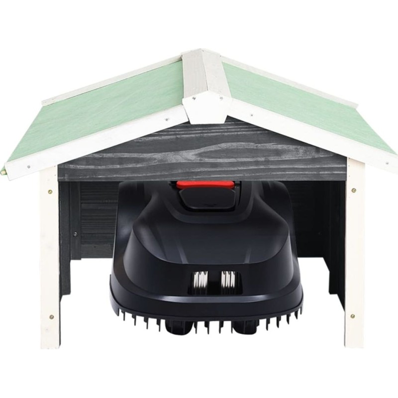 Ten garaż dla zautomatyzowanej kosiarki, wykonany z litego drewna jodłowego, jest trwały i odpowiedni do użytku na zewnątrz. Skutecznie chroni kosiarkę i jej stację ładującą przed deszczem, śniegiem i szkodliwym promieniowaniem UV. W ten sposób wydłuża on żywotność kosiarki i jej akcesoriów. Rustykalny i prosty design pasuje wizualnie do większości ogrodów. Tę osłonę można łatwo zmontować i równie łatwo przenosić, ponieważ nie są potrzebne żadne kołki ani inne elementy mocujące.