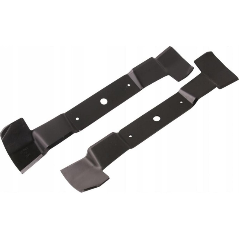 Kompatybilność: traktorki Solo by AL-KO z koszem o szerokości pracy 102 i 105 cm - dokładna lista modeli w opisie. Typ noża: uniwersalny, prawy + lewy. Ilość: 2 szt. - komplet. Długość: 524 mm. Średnica otworu centralnego: 16,4 mm. Rozstaw otworów bocznych: 150 mm.
