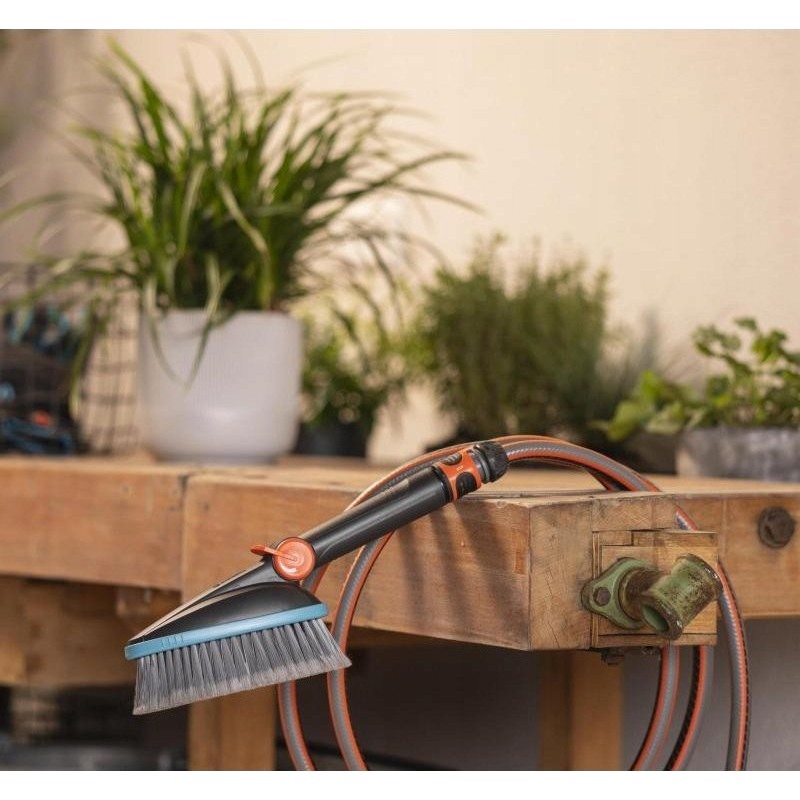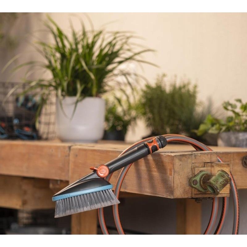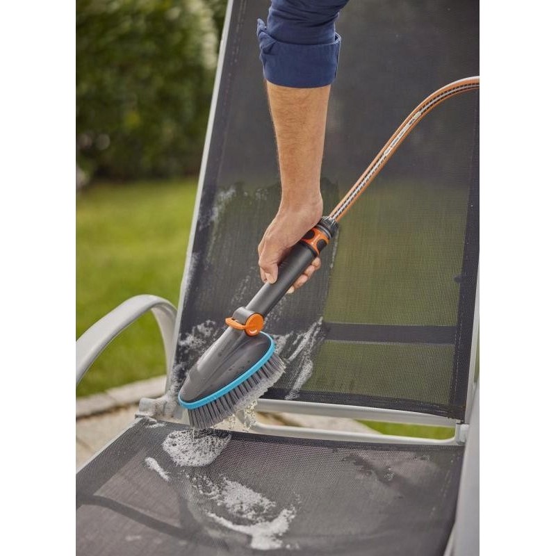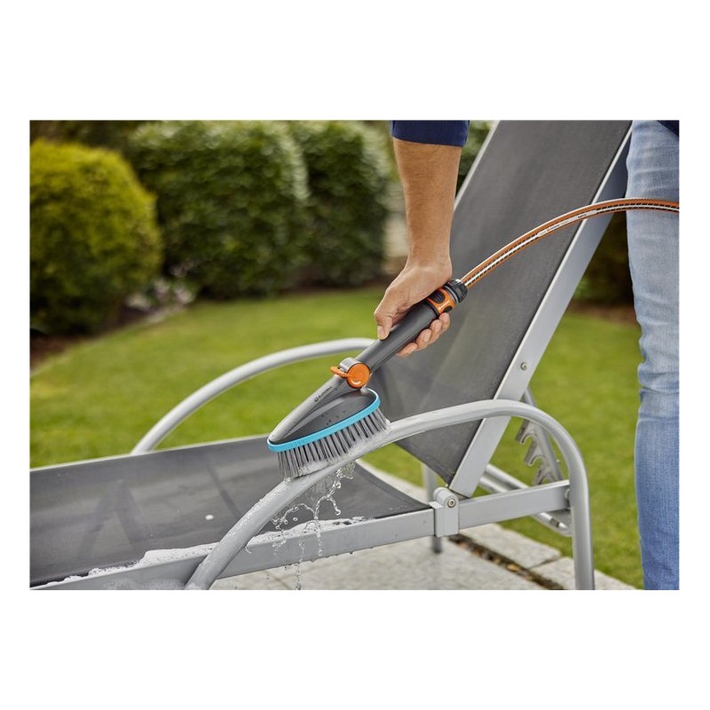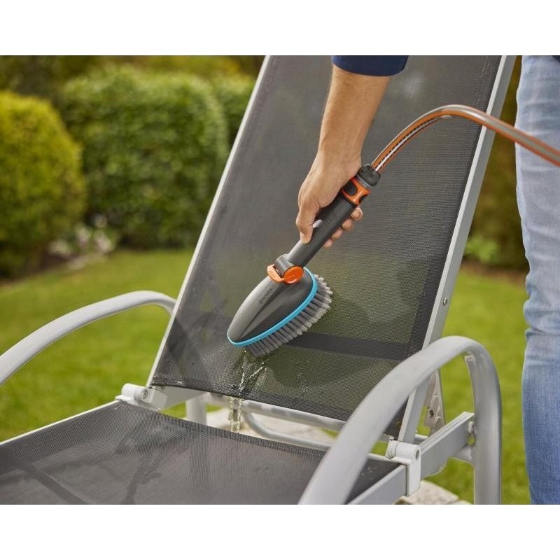 GARDENA Cleansystem miękka szczotka ręczna M z łatwą regulacją przepływu kciukiem, przeznaczona do czyszczenia małych powierzchni.