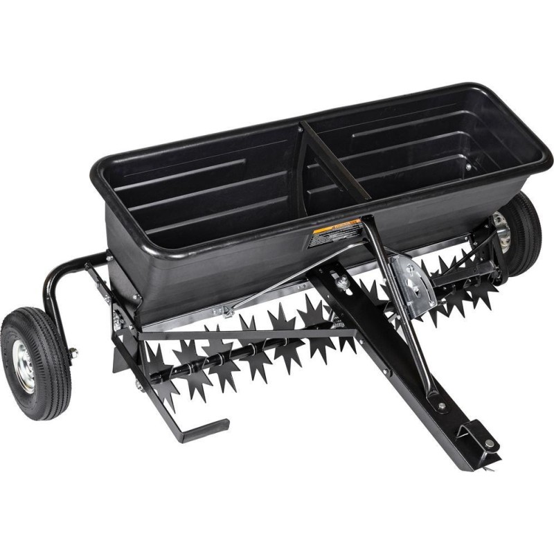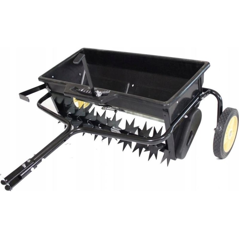 CEDRUS SP31519 Aerator - rozrzutnik służy do podłączenia do traktorka ogrodowego i pozwala na jednoczesne napowietrzanie i nawożenie trawnika. Dwa koła transportowe pozwalają na swobodne przemieszczanie pomiędzy obszarami pracy.