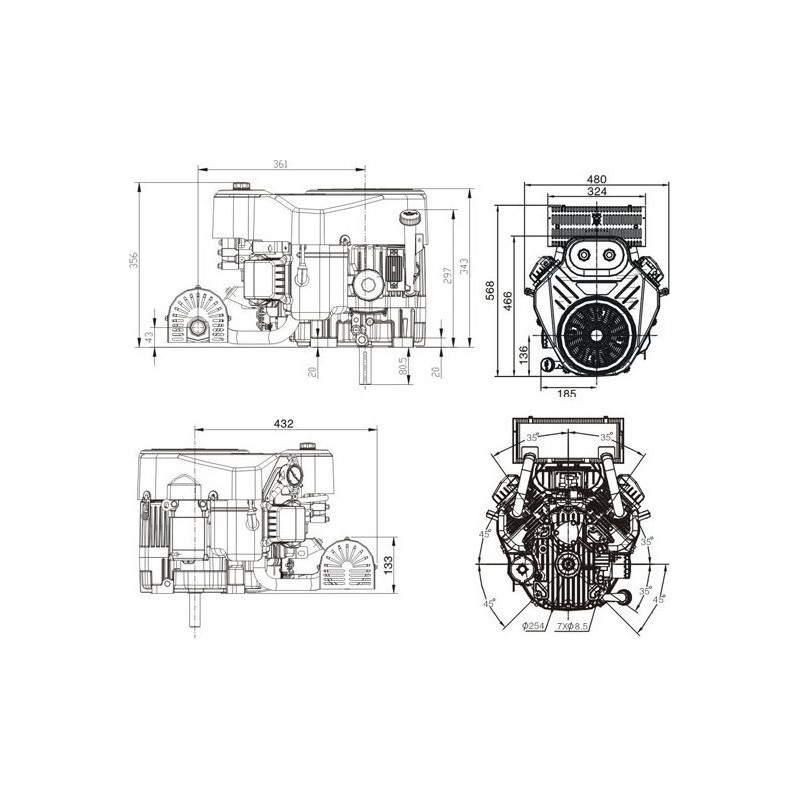 Loncin SILNIK LONCIN LC2P76F DO TRAKTORKA SPALINOWY BENZYNOWY V-TWIN LONCIN 2P76 V2 18 KM 635 cm3 DWUCYLINDROWY WAŁ PIONOWY WALC