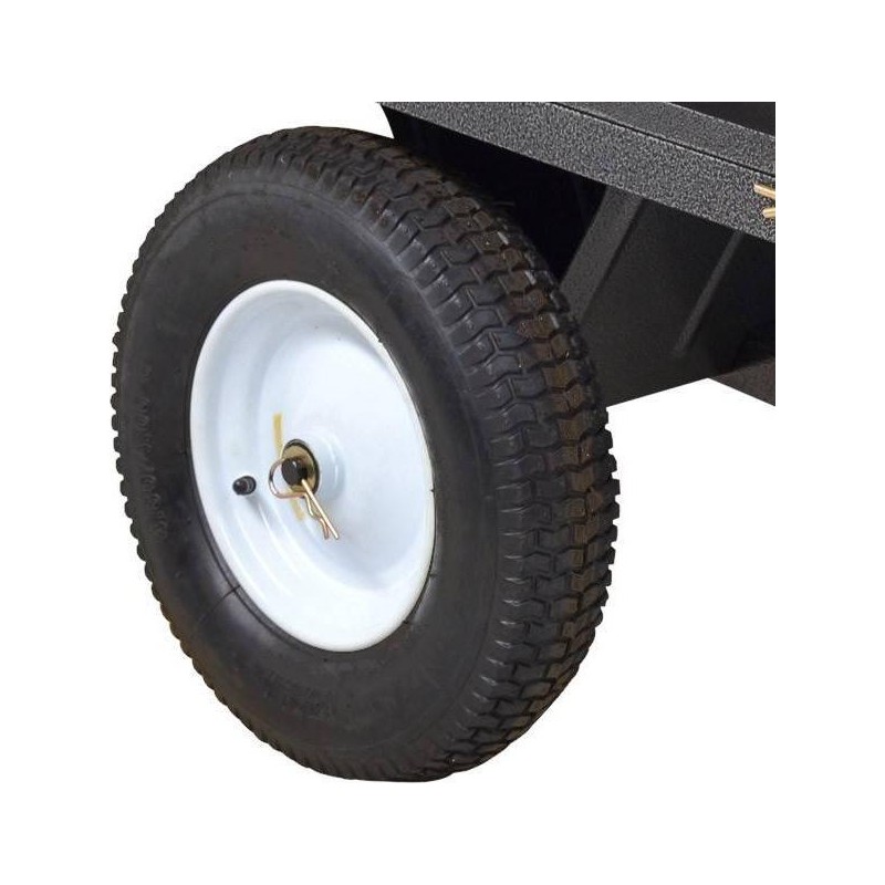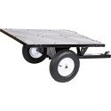 Uniwersalna przyczepka transportowa do traktorów ogrodowych. Przyczepka pozwala na sprawne przewiezienie ładunku nawet 225 kg za pomocą traktorka ogrodowego. Idealnie nadaje się do transportu drewna, węgla, trawy, ziemi ogrodowej, nawozów itp.
