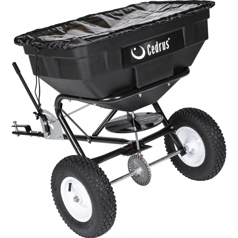 CEDRUS SP31508 Rozsiewacz Siewnik to duży mobilny i zarazem wytrzymały rozsiewacz ogrodowy wykonany z wysokiej jakości materiałów odporny na eksploatację jak i korozję cechujący się praktycznością, prostotą zarówno konstrukcji jak i zastosowania. Rozsiewacz wyposażony został w duże pompowane koła. Produkt jest ponadto wyposażony w uniwersalny zaczep do kosiarek traktorowych. Rozsiewacz został wyposażony w bardzo solidny zaczep, a w całości wykonany z najlepszej jakości materiałów, może służyć przez bardzo długie lata, stale prezentując się jako urządzenie niezawodne, skuteczne w pracy i wygodne w użyciu. Dzięki niemu praca na działce i w ogrodzie w końcu może być bardziej przyjemna niż zwykle. Regulacja dawki ułatwi równomierne obsianie ziemi.